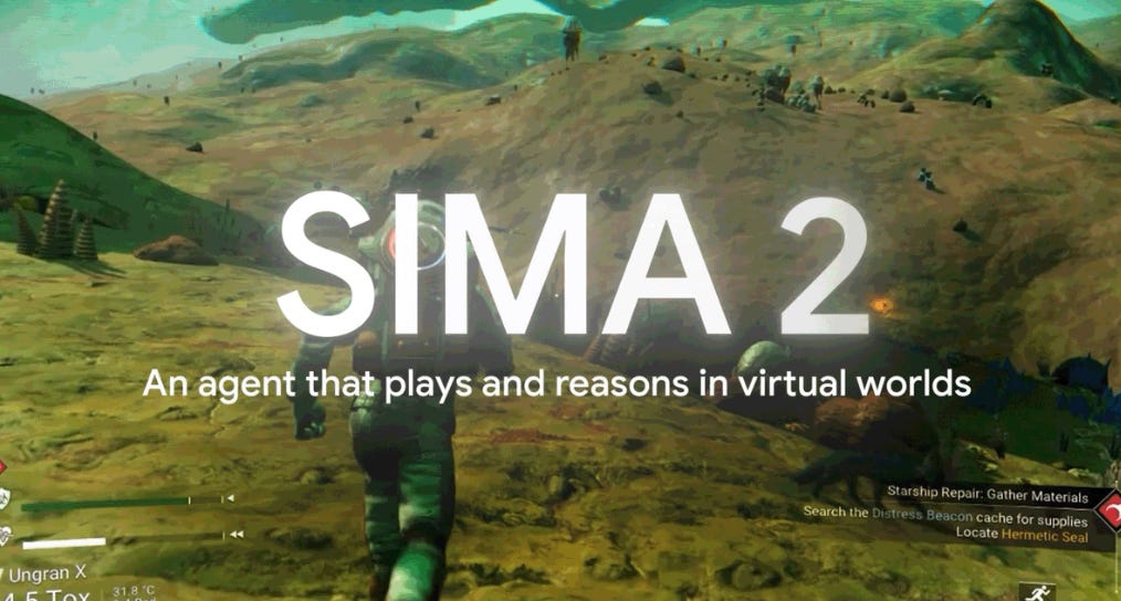 ② Google DeepMind 推出虚拟 3D 世界 AI 代理 SIMA 2。由 Gemini 驱动的 SIMA 2 是 DeepMind 迄今最强大的虚拟 3D 世界 AI 代理。它不仅能遵循指令,还能在交互式环境中思考、理解和采取行动,支持文本、语音甚至图像进行交互。SIMA 2 能够在未经训练的游戏环境中展现出泛化能力,并在由世界模型 Genie 3 创建的 3D 世界中进行测试,展示了前所未有的适应性。消息来源